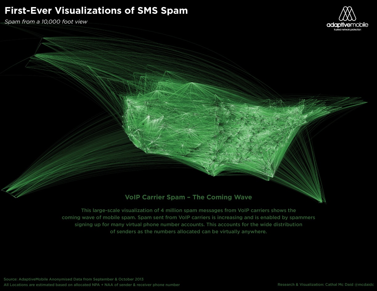 First-ever snapshot of all text messages across the US identifies SMS spam hotspots