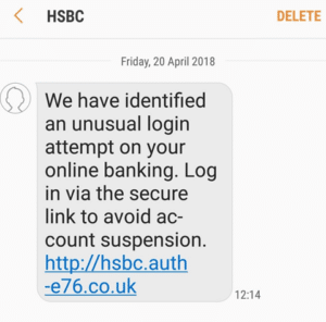 At the same time, it is often not fair to single out individual banks or mobile phone operators. In this example we talk about Bank of Ireland, but examples of other banks being attacked in a similar way exist (in Ireland and in other places like the UK). Below is a screenshot taken from twitter of a UK bank – HSBC – being targeted in 2018.