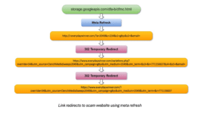 Attackers are using a URL constructed with this domain to link to a static webpage being hosted in a bucket on the Google Cloud Storage platform. The spam website is then loaded from that static webpage using the “HTML meta refresh” method.